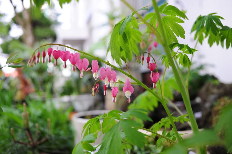 The Bleeding Heart, or Dicentra spectabilis, is a romantic and enchanting plant with heart-shaped flowers that appear to be "bleeding." This plant will bring a whimsical touch to your garden.